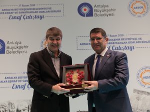 Konuşmaların ardından Başkan Türel, tek tek esnafın sorunlarını dinledi. AESOB Başkanı Adlıhan Dere, Büyükşehir Belediye Başkanı Menderes Türel’e Antalya’ya ve esnafa hizmetlerinden dolayı teşekkür plaketi verdi. HABER MERKEZ