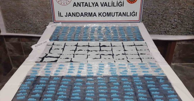 Antalya'da "uyuşturucuya sıfır tolerans" prensibiyle çalışmalarını yürüten Antalya Valiliği İl Jandarma Komutanlığı ekipleri, başarılı operasyonlarına hız kesmeden devam ediyor. Elde edilen bilgiler sonrasında harekete geçen jandarma ekipleri durdurdukları araçta, 4 bin 280 adet uyuşturucu (Ecstasy) hap ve 48 bin kullanımlık A4 sentetik kannabinoid (Bonzai) maddesi ele geçirdi.