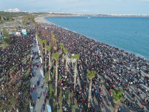 Fetih kutlamalarının en coşkulu anı ise Solo Türk F-16 uçağının Sahil Antalya Yaşam Parkı’nda gerçekleşen nefes kesen gösterisi oldu. On binlerce Antalyalı, gösteriyi izlemek ve fetih coşkusuna ortak olmak için Konyaaltı Sahili’ne akın etti. 7’den 70’e sahili tıklım tıklım dolduran Antalyalılar, Antalyalı Solo Türk’ün Konyaaltı semalarındaki gösterisini heyecanla izledi.