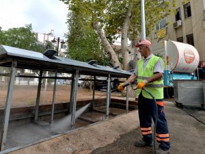 Muratpaşa Belediyesi; çöp konteynerlerini kötü koku, kirlilik ve bakterilere karşı rutin yıkama ve dezenfekte işlemini sıklaştırdı. Artan hava sıcaklıkları nedeniyle olası olumsuzlukları önlemeyi amaçlayan Muratpaşa Belediyesi Temizlik İşleri Müdürlüğü ekipleri, konteynerlerin yanı sıra, konteynerlerin bulunduğu alanları da özel dezenfektan deterjanlarla yıkıyor.