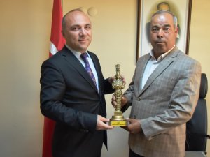 İzmir Ziraat Odaları Birliği ve Selçuk Ziraat Odası Başkanı İbrahim Erdallı tarafından Türk tarımına yeni bir ufuk açan Gelin Kardeş Olalım Projesi için Antalya Tarım ve Orman İl Müdürü Mustafa Özen’e takdim edilmek üzere Şube Müdürü İbrahim Irmak’a Selçuk’un simgesi bereketi temsil eden Artemis heykeli hediye edildi. İzmir dönüşü İl Müdürü Özen’e Artemis Heykeli takdim edildi.