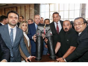 Kaş Belediye Başkanı Mutlu Ulutaş, Cumhurbaşkanı Recep Tayyip Erdoğan'a "1. Kaş Belediyesi Yağlı Pehlivan Güreşleri" öncesinde kispet hediye etti.