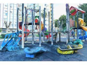 Mersin'de bir parkta bulunan çocuk oyun grupları, kimliği belirsiz kişi ya da kişiler tarafından yakıldı.