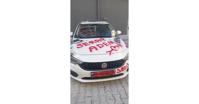 Olay dün gece Muratpaşa İlçesi'nde yaşandı. Çevredeki vatandaşların cep telefonuyla çekip sosyal medyada paylaştığı olayda beyaz bir otomobil üzerine sprey boyayla kalp işareti yapıp " Serap, Adem, seni seviyorum, beni bırakma, benimsin" gibi yazılar yazan kimliği belirsiz kişi kayıplara karıştı.