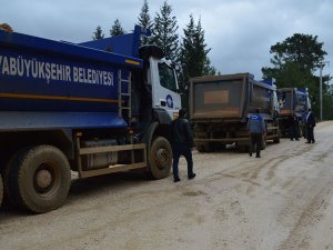 Antalya Büyükşehir Belediyesi alt yapı hazırlıklarını tamamladığı Manavgat Tilkiler Mahallesi yolunu asfaltlıyor.