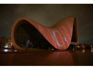 Azerbaycan'ın en önemli sembollerinden biri haline gelen Haydar Aliyev Merkezi'ne Türkiye'ye destek amacıyla Türk bayrağı silüeti yansıtıldı.