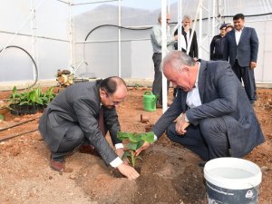 Ardından Boztepe Mahallesine geçildi. 7 bin 500 metrekare örtüaltı ve 2 bin 500 metrekare açık alan olmak üzere toplam 10 bin metrekare alanda muz tarımı yapan Suat Özdemir’in serasında incelemelerde bulunan Vali Karaloğlu üreticiden bilgiler aldı. Burada Vali Karaloğlu, Kaymakam Ergün, Başkan Şahin, Başkan Yardımcısı Gökçen muz fidanı da dikti.
