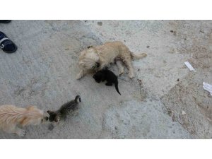 Antalya'nın Manavgat ilçesinde 1.5 yaşındaki köpek, anneleri kazada ölen 4 yavru kediye annelik yapıyor. Köpeğin kedi yavrusunu emzirdiği, onlara annelik yaptığı bir dünyada savaşlara anlam veremediğini belirten İrfan Bayraktar, "Bütün insanlığın, dünyanın bundan ders çıkarmasını istiyorum" dedi.