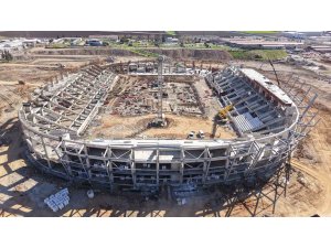 Kahramanmaraş'ta 17 bin 500 seyirci kapasitesine sahip şehrin yeni stadyumunun inşası hızla devam ediyor.