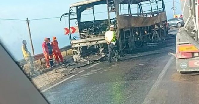 Mersin-Antalya yolunda 22 yolcusu bulunan otobüs alev alev yandı. Yolcuların zamanında tahliye edilmesi ile yaşanabilecek bir faciaya engel olundu.