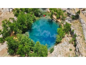 Kahramanmaraş'ta suyunun derinliği ve kaynağının nereden geldiği belirlenemeyen esrarengiz doğa harikası "Yeşilgöz', 6 Şubat depremlerinin ardından stres atmak isteyen depremzedelerin ilgisini çekmeye devam ediyor. Dalgıçların 250 metre indiği suyun kaynağı henüz bulunamadı.
