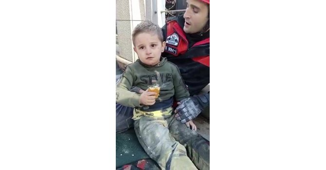 Kahramanmaraş merkezli 7.7 büyüklüğünde yaşanan depremin en çok etkilediği illerin başında gelen Hatay'dan güzel bir haber daha geldi. Merkez ilçe olan Antakya'da saatlerce enkaz altında kalan 5 yaşındaki Muhammed, Esenyurt Belediyesi Arama Kurtarma ekipleri tarafından kurtarıldı. Yaşadığı olayın şoku ile ne yapacağını şaşıran küçük çocuk şaşkınlıkla etrafı izlerken, ekiplerin verdiği keki yedi. Yaşanan o anlar ise kameraya yansıdı.