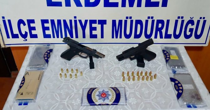 Alınan bilgiye göre, Erdemli İlçe Emniyet Müdürlüğü Asayiş Büro Amirliği ekipleri bir kişiyi silahla tehdit eden ve 500 bin TL isteyen şüphelilerle ilgili çalışma yaptı. Ekiplerin yaptığı hassas ve titiz çalışmalarla 5 şüpheli belirlendi. Polisin teknik ve fiziki takibine alınan 5 şüpheli tekrar şantajla para istemek için müştekiye ait iş yerine geldiğinde suç üstü yakalandı. Yakalanan şüphelilerin üzerinden 2 tabanca ve çok sayıda mermi ele geçirildi.