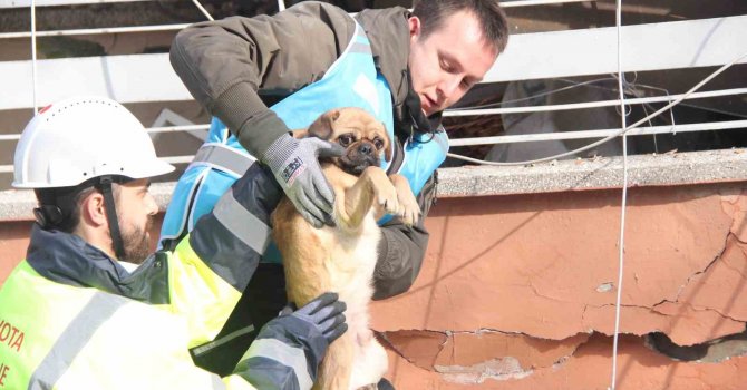 Kahramanmaraş'taki depremler 10 ili etkiledi. Depremden etkilenen iller arasında yerini alan Hatay'da çok sayıda bina yerle bir oldu. Özellikle şehir merkezinde birçok bina yıkılırken, onlarca insan enkaz altında kaldı. Ekiplerin dün başlattığı arama çalışmaları bugün de devam ederken, gün içinde 7 kişi sağ olarak çıkarıldı. Bugün arama yaptıkları sırada yavru bir köpeğin sesini duyan ekipler, onun da canını kurtarmak için harekete geçti. Yapılan çalışmayla balkona çıkarılan köpek, ekipler tarafından oradan alınarak kurtarıldı. Dünden beri köpeğin sesini duyduğunu ve kurtarılması için kapının önünde beklediğini söyleyen bir kadın, korktuğu görülen ve titreyen köpeği sahiplendi.