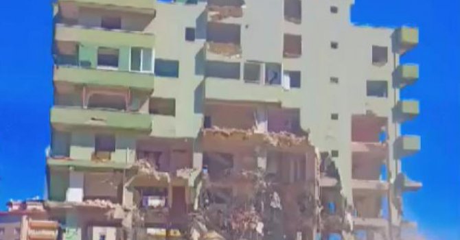 Hatay'ın Antakya ilçesinde 6 katlı bir bina, iş makinesinin darbesiyle yerle bir oldu, o anlar cep telefonu kamerasına yansıdı.