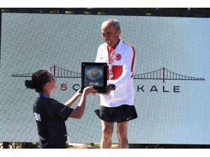 73 yaşındaki Milli sporcu Ali Bıdı, 1915 Çanakkale Köprüsü Gelibolu Triatlonu'nda 65+ yaş kategorisinde kazandığı kupa ve madalyasını şehitlere adadı.