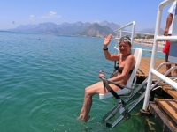 Engelsiz Plajı’nda deniz keyfiAntalya Büyükşehir Belediyesi’nin engelli bireyleri denizle buluşturan Engelsiz Plajı yoğun ilgi görüyor. Şehir içi ve dışından gelen tatilciler rahatlıkla Akdeniz’in masmavi sularında serinlemenin keyfini yaşıyor.08 Temmuz 2019 Pazartesi 16:05