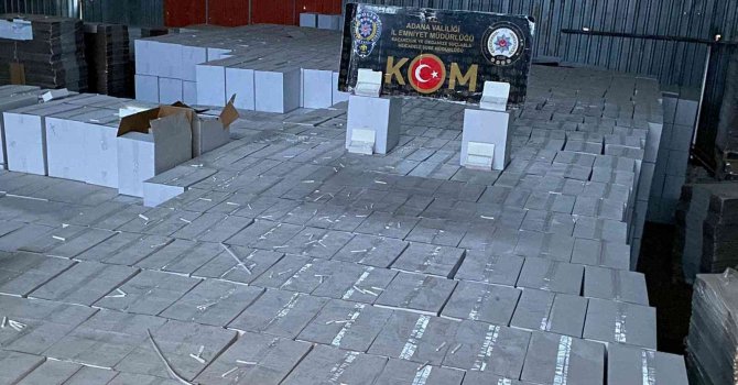 Adana'da polisin bir depoya düzenlendiği operasyonda kaçak 132 milyon 250 bin adet makaron, 4 milyon 725 bin adet doldurulmuş sigara, 31 kilo 600 gram kıyılmış tütün ve 1 adet sigara üretim ünitesi ele geçirildi.