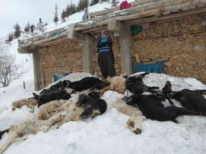 Feke'ye bağlı Şahmuratlı Mahallesi'nde besicilik yapan 7 çocuklu Nezahat-Cumali Şengün çifti, olumsuz hava koşulları nedeniyle ahırda tuttukları küçükbaş hayvanlarının ölümleriyle şok oldu.
