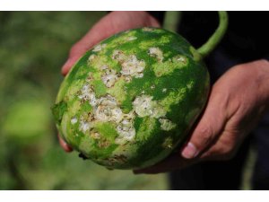 Adana'da dolu yağışı tarım arazilerini vurdu. Karpuz, domates, şeftali, kavun, biber ve mısırda zarar oluştu. Tarlalarda oluşan zarar, dron ile de havadan görüntülendi.