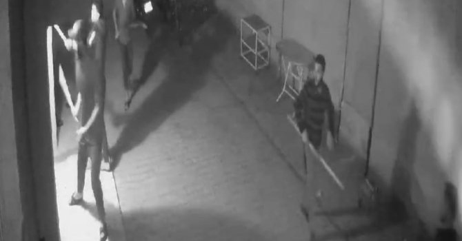 Ellerinde sopalarla saldıran gençlerin bir evin camlarını kırdığı anlar ise güvenlik kamerasına saniye saniye yansıdı.