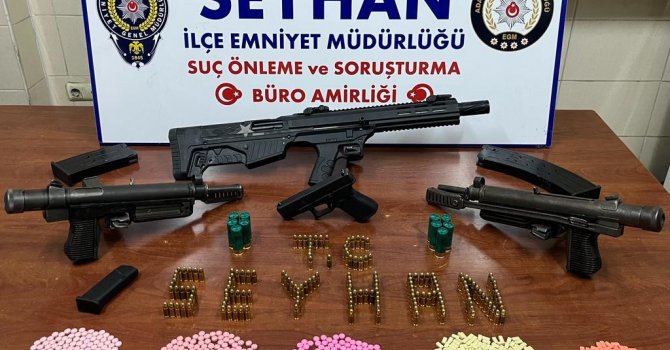 Seyhan İlçe Emniyet Müdürlüğüne bağlı Suç Önleme ve Soruşturma Büro Amirliği ekipleri, dün öğle saatlerinde Dağlıoğlu Mahallesi'ndeki bir evin kurşunlanmasıyla ilgili çalışma başlattı. Ekipler, motosikletli ve kar maskeli 2 şüphelinin, otomatik tabancayla bir eve ateş açıp kaçtığını belirledi. Bölgedeki güvenlik kameralarını inceleyen polis, silahı kullanan şüphelinin B.B. olduğunu tespit etti. Adresi belirlenen B.B., polisin baskınıyla gözaltına alındı. Öte yandan polis, evinde çok sayıda silah ve mermi bulunduğu belirlenen M.B.'yi de eş zamanlı baskında yakaladı. Şüphelilerin evlerinde yapılan aramalarda 2'si otomatik 3 ruhsatsız tabanca, ruhsatsız pompalı tüfek, 825 uyuşturucu hap ve 239 mermi ele geçirildi.