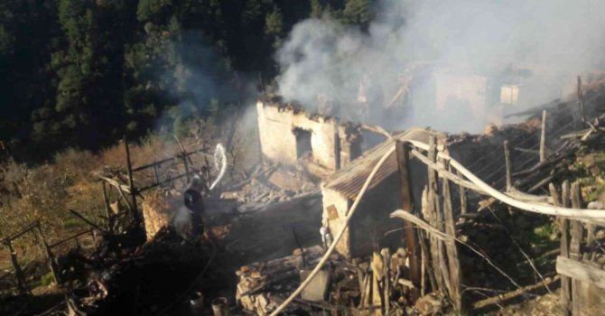 Adana'nın Kozan ilçesinde çıkan yangında kerpiç ev küle döndü.
