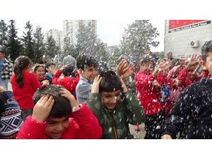 Kozan'da ise kara hasret kalan öğrenciler için Halit Dağlı İlköğretim Okulu'na suni kar getirildi. Öğrenciler üzerlerine sıkılan suni karla doyasıya eğlendi.