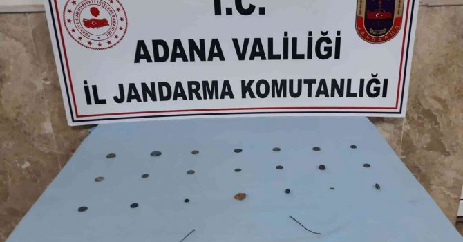 Adana'da jandarma ekipleri, 21 adet Roma ve Helenistik döneme ait bronz sikke, 1 adet kolye ucu, 3 adet toka ele geçirdi.