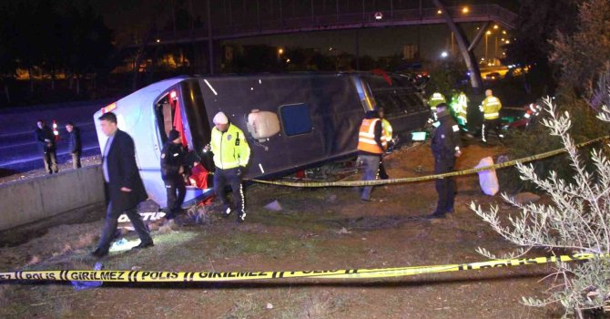 Adana'da otoyolda beton bariyere çarpan yolcu otobüsü devrildi. Meydana gelen kazada 8 kişi yaralandı.