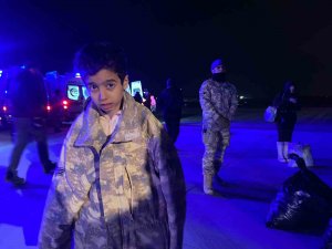 Öte yandan askeri kargo uçağından indikten sonra yakınlarını bekleyen ve üzerinde montu olmayan bir depremzede çocuğa, askeri personelin montunu vermesi yürekleri ısıttı.
