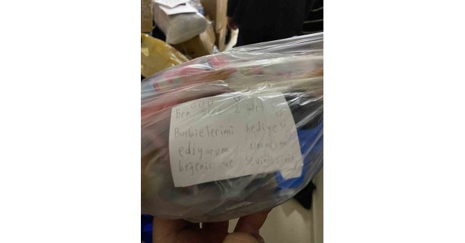 Darıca'da afet bölgesine gönderilmek üzere toplanan yardımların içerisinden küçük bir kız çocuğunun oyuncakları çıktı. Çocuğun notun üzerine yazdıkları ise yürekleri ısıttı.
