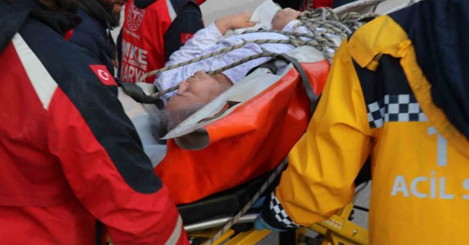 Osmaniye'de deprem sonrası ağır hasar oluşan 10 katlı apartmanın 6. katında mahsur kalan obezite hastası kadını, itfaiye ekipleri kurtardı.