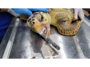 Yapılan ilk kontroller sonucunda ağız içinden kan geldiği görülen ve olta kancası yüzünden ağız bölgesi parçalandığı anlaşılan caretta caretta, Doğa Koruma ve Milli Parklar (DKMP) ekiplerinin desteğiyle veteriner kliniğine ulaştırıldı. Klinikte kafa röntgeni çekilen ve ilk müdahalesi yapıldıktan sonra ağzında yoğun kanamaya sebep olan kesik ve yaralı yerler, lokal anestezi yöntemiyle uyuşturularak 2,5 saatlik operasyonun ardından tedavi edildi.