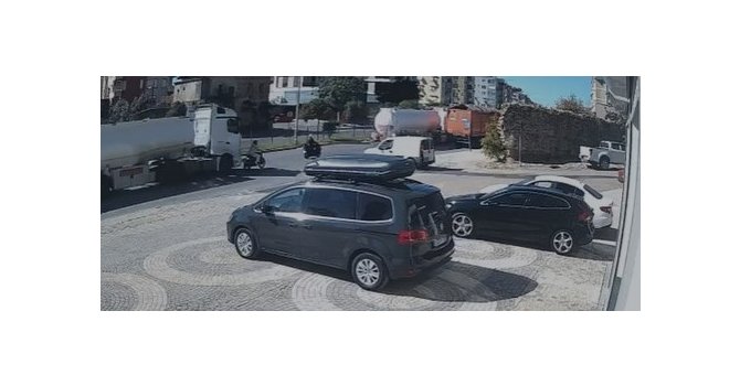Alanya'da akaryakıt taşıyan tankerin motosiklete çarpması sonucu meydana gelen kazada motosikletin sürücüsü yaralandı. Kaza anıysa güvenlik kamerasına saniye saniye yansıdı.