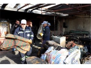 Harekete geçen Çevre Koruma ve Kontrol Müdürlüğü ekipleri, iş makineleri desteğiyle mahalleye giderek yangın sonucu kullanılamaz hale gelen beyaz eşyaları, mobilyaları ve diğer malzemeleri toplayarak evden çıkardı. Ardından da ekipler, yangın nedeniyle zarar gören evde temizlik çalışması yaptı.
