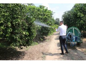 Seyhan ilçesi Mıdık Mahallesinde ilaçlama yapılan bir narenciye bahçesini ziyaret eden İl Tarım ve Orman Müdür Vekili Efe Güler, daha önce 13-16 Temmuz 2023 tarihleri arasında toplu mücadele yapıldığını belirtti.