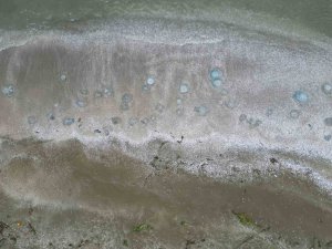 Akdeniz kıyılarında geçtiğimiz haftalara ölü denizanaları görülmeye başlanmıştı. Akdeniz'e kıyısı olan Hatay'ın Samandağ ve İskenderun ilçelerinde sahilde ölü denizanaları görülmüştü. Şimdiyse Erzin ilçesinde bulunan Burnaz sahili de ölü denizanalarıyla kaplandı. Uzmanların "dokunmayın" uyarısında bulunduğu sahil şeridini kaplayan denizanaları dron ile havadan görüntülendi.