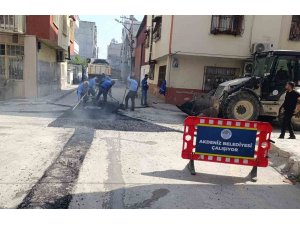 Mersin'in merkez ilçe Akdeniz Belediyesi, ilçe genelinde ihtiyaç duyan mahallelerde asfalt yama ve kaldırım yenileme hizmetinin yanı sıra, zarar gören sokaklarda kilit taşı, karo ve bordür tamiratı çalışmalarını ara vermeden sürdürüyor.