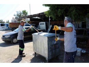 Çevre Koruma ve Kontrol Müdürlüğü ekipleri, güçlendirilen personel, araç ve ekipman gücüyle Akdeniz ilçesine bağlı 65 mahalleye 7 gün 24 saat esasıyla aralıksız hizmet vermeye, vatandaşların temiz ve sağlıklı çevre hakkını korumaya devam ediyor. İlçe genelinde her gün tonlarca çöpü atık bertaraf tesisine ulaştıran ekipler, zaman içinde yıpranıp zarar gören çöp konteynırlarını da envanterde olması halinde ya yenisiyle değiştiriyor ya da yenileyip tekrar sokaklara koyuyor. Zaman içinde yıpranan ve aşınıp zarar gören çöp konteynırlarını makine ikmal sahasında tamir eden, kaynakla güçlendirip ardından boyadıktan sonra yine alındığı sokaklara bırakan ekipler, Mersin'i de etkileyen aşırı sıcaklar nedeniyle kötü kokular yayılmasını önlemek, sinek haşere ve fare yayılmasını engellemek amacıyla da belirli aralıklarla çöp konteynırlarını dezenfektanlı su ile ilaçlayıp yıkıyor.