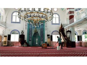 Mersin'in merkez Akdeniz ilçesi sınırlarında bulunan camiler temizlenip halıları yıkanıyor, bitmek üzere olan korona virüs salgınına rağmen ilaçlama devam ediyor.