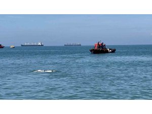 Hatay'da denize düşerek telef olan ve kıyıya vuran angus, ekipler tarafından kıyıdan kaldırıldı.