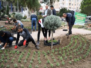 Aksu Belediyesi tüm birimleri ile ilçenin gelişmesi, güzelleşmesi için çalışmalar yürütüyor. Aksu Kaymakamlığı önünde çalışma başlatan Park ve Bahçeler Müdürlüğü peyzaj çalışmalarında sona geldi. Alanı rengarenk çiçeklerle donatan ekipler Aksu’ya renk kattı. Park ve Bahçelerden Sorumlu Başkan Yardımcısı Hakkı Çoşgun çalışmaları denetleyerek, çiçek dikimi yaptı.