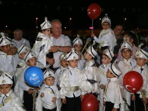 Palyaçolar ve animatörlerin çocukları eğlendirdiği, Hülya Yıldız ve Murat Balaban'ın sahne aldığı şölende Aksu Belediye Başkanı Halil Şahin ve eşi Ümmü Şahin sünnet çocuklarıyla yakında ilgilendi.