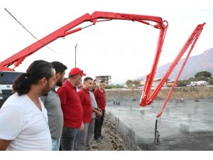 Alanya Belediye Başkanı Adem Murat Yücel'in Mahmutlar Mahallesi'nde Dışişleri Bakanı Mevlüt Çavuşoğlu, Alanya Kaymakamı Fatih Ürkmezer, Antalya Milletvekilleri Mustafa Köse, Kemal Çelik, Tuba Vural Çokal, AK Parti Antalya İl Başkanı İbrahim Ethem Taş, MHP MYK Üyesi Hüseyin Yıldız, ilçe başkanları, muhtarlar ve vatandaşların katılımıyla temelini attığı Mahmutlar Kültür Merkezi ve Etüt Merkezi hızla yükseliyor. 9 Eylül Cuma günü atılan temelin ardından çalışmaları yakından incelemeye devam eden Başkan Yücel, inşaatla ilgili bilgiler verdi. Çalışmaların 5 beton pompası ve 75 mikser ile sürdüğünü belirten Başkan Yücel, "Çalışmalarımızı aralıksız sürdürerek en kısa zamanda bu dev projeyi vatandaşlarımızın kullanımına açmış olacağız " dedi.
