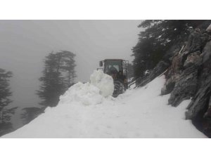 Antalya Büyükşehir Belediyesi Kırsal Hizmetler Dairesi Başkanlığı ekipleri, Alanya'nın Uğurlu Mahallesi Tereviş Yaylası yolunda ise kar temizleme çalışması gerçekleştiriyor. Kar yüksekliğinin 1 metreyi aştığı bölgede ekipler zorlu koşullar altında çalışarak yolu açmaya ve ulaşımı sağlamaya çalışıyor.