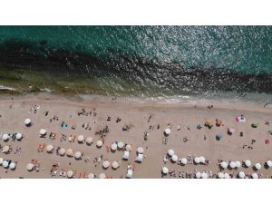 Ramazan Bayramı tatilini fırsata çeviren yüzlerce yerli ve yabancı turist Alanya'nın dünyaca ünlü plajına adeta akın etti.