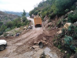 Alanya Belediyesi ekipleri bir yandan da geçen hafta Alanya'da etkili olan sağanak yağışlarda göçük ve heyelan nedeni ile kapanan kırsal mahalle yollarında çalışmalarına devam ediyor. Heyelan nedeni ile kapanan Dere Mahallesi Çukuryurt yolu ekiplerin çalışması ile açıldı.