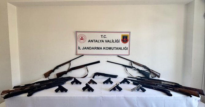 Antalya İl Jandarma Komutanlığı KOM Şube Müdürlüğü, Jandarma Suç Araştırma Timi (JASAT) ve Alanya İlçe Jandarma Komutanlığı ekipleri, ruhsatsız silah bulunduran, taşıyan ve satışını yaptığı belirlenen şüphelilere yönelik 6 ayrı adrese eş zamanlı operasyon düzenledi. Düzenlenen operasyonlarda; 8 adet tabanca, 13 adet av tüfeği, 8 adet tabanca şarjörü, 155 adet tabanca fişeği, 180 adet av tüfeği fişeği ele geçirildi.