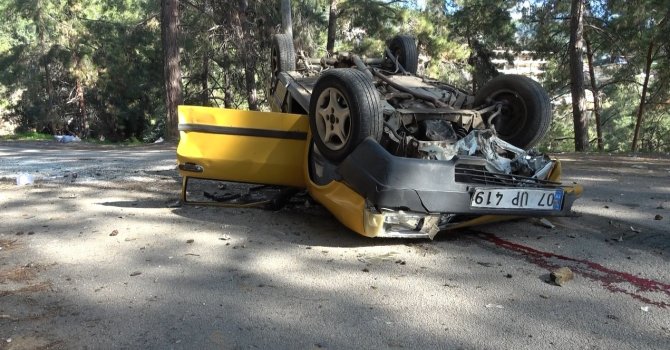 Antalya'nın Alanya ilçesinde direksiyon hakimiyetini kaybeden otomobil sürücüsü önce toprak zemine çarpıktan sonra takla atarak durabildi.